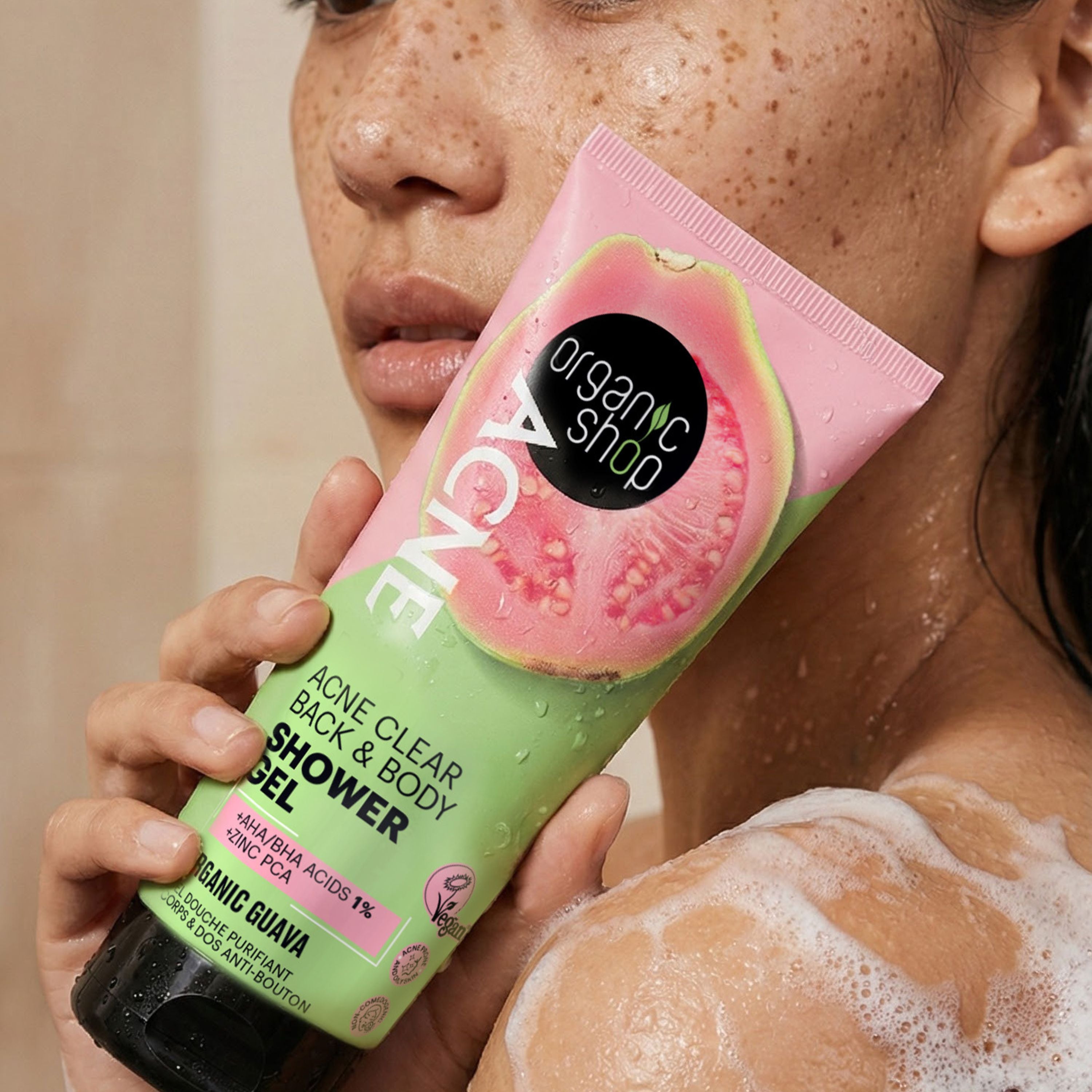 Part of the Organic Shop Acne Skincare Range, a complete routine designed for problem skin. Powered by Organic Guava, rich in vitamin C and antioxidants, it helps calm skin, control excess oil and reduce the look of post-acne marks for a clearer, healthier-looking complexion.
